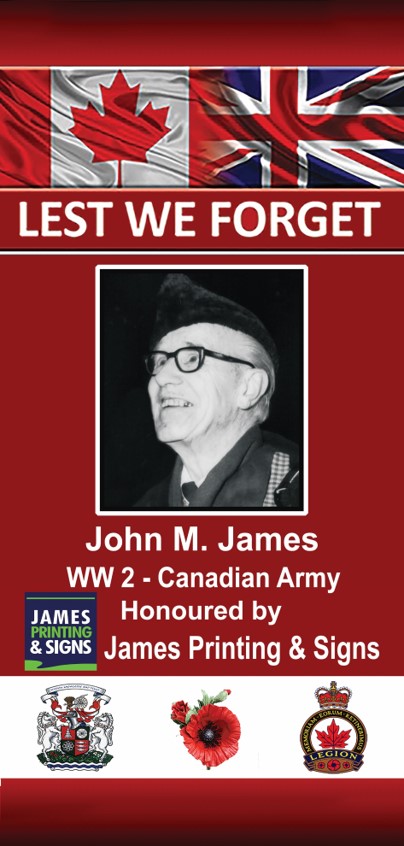 His brother, a year younger, applied to come to Canada as an indentured farmhand but failed the physical as he was blind in one eye. With the trip already booked, Jack filled the position and arrived in Canada in 1929. He worked a three-year term on a farm near Norval, Ontario. In 1932, Jack found employment on an estate at Shanty Bay on the Kempenfelt arm of Lake Simcoe, near Barrie, Ontario. He worked there during the summer, moving to work for the estate owner in Toronto in the winter months, and met his wife, Evelyn Leavell. On July 22, 1940, at 27, Jack enlisted to serve in the Second World War with the Grey and Simcoe Foresters, training at Camp Borden. In March 1941, Jack married Evelyn and moved to Collingwood, where they had two children before he embarked for England on June 16, 1943. Jack completed more training at a base near the British town of Aldershot. On November 1, 1943, Jack’s regiment broke up for reinforcements. Consequently, Foresters found themselves represented in tank regiments in almost every theatre of conflict. Jack was assigned to the armoured unit of the 1st Hussars and began training for D-Day. Being an armoured unit, they had to learn to operate amphibious tanks. These tanks would embark deeper water and propel themselves ashore while creating a flotation screen using canvas around the tank as a hull, which enabled them to float. Rear propellers helped it drive through the water, but they were difficult to operate and could not tolerate rough seas, resulting in several losses of tanks and men during training. Jack’s unit departed Portsmouth, England, for the Normandy attack on Juno Beach on June 5, 1944. The following dawn, they entered the water approximately 1,000 metres offshore when a wave swamped the tank, causing the crew to evacuate. Four of the five-person unit, including Jack, were killed by enemy machine-gun fire while attempting to make the beach. Jack was 31. Jack’s son, grandson and two great-grandchildren are long-time residents of Bowmanville. Along with the banner that is displayed in Bowmanville to honour Jack, there is a second banner displayed along the Juno Beach front that is placed by five French villages in honour of Jack’s sacrifice. |