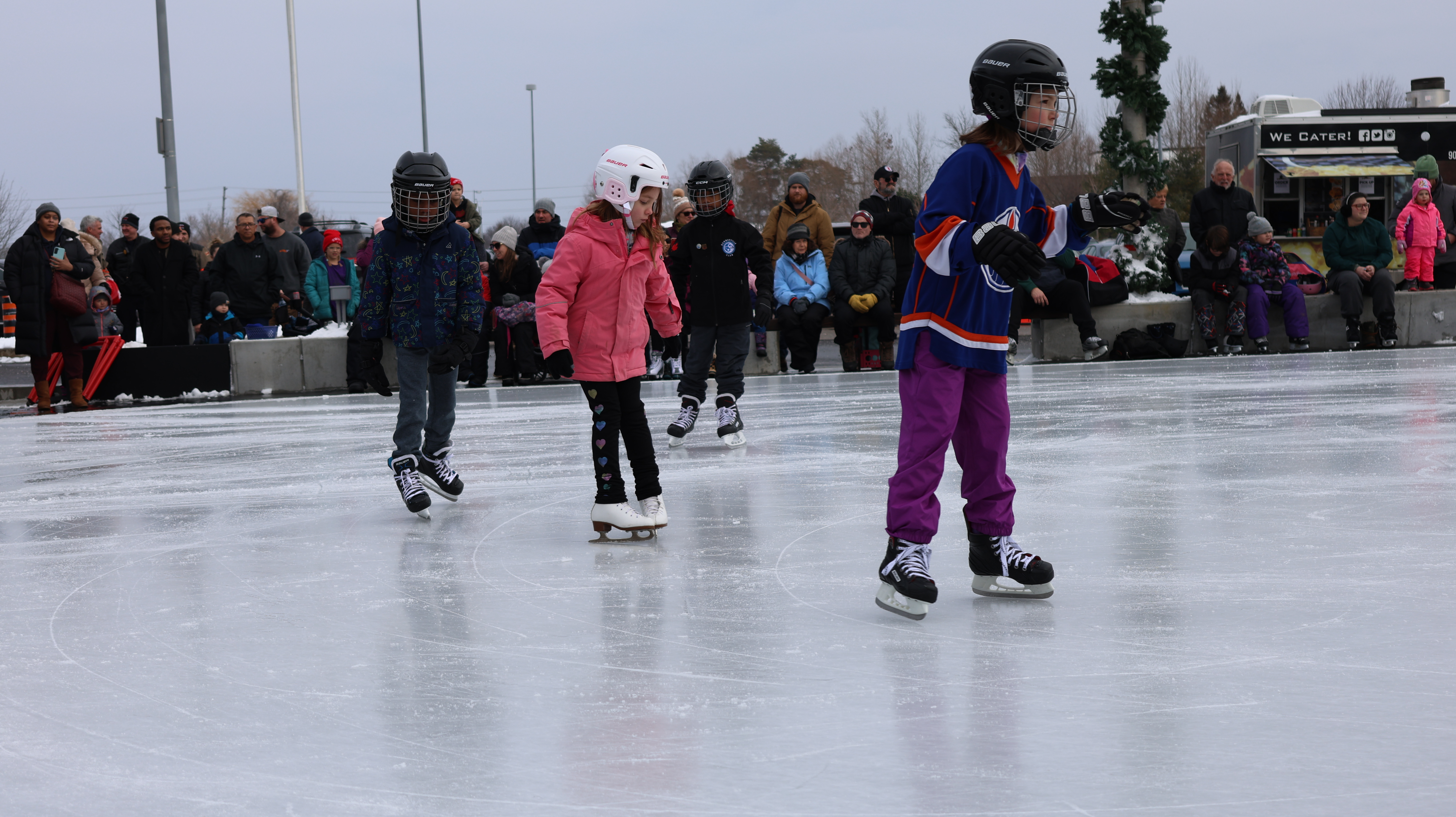 The rinks feature refrigerated ice surface bordered by a rubber skate mat, ample lighting for evening use, chairs and benches, gas fire pits, skating aids and a warming room.