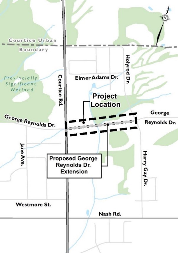 The Municipality of Clarington is undertaking a Schedule 'B' Municipal Class Environmental Assessment (EA) to investigate alternatives for connecting George Reynolds Drive from Courtice Road to Harry Gay Drive. This new connection is proposed to support east-west traffic, transit, and active transportation systems across the Hancock Neighbourhood and northern Courtice.