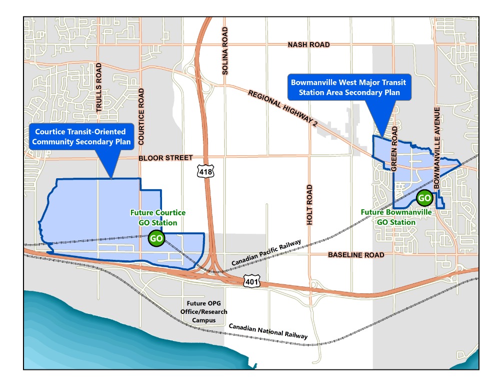 Currently, the Municipality is working on two Secondary Plans that include these proposed GO train station areas: The Courtice Transit-Oriented Community Secondary Plan and the Bowmanville West Major Transit Area Secondary Plan. The proposed new route will strengthen GO service dramatically within the community by providing two-way all-day service and integral connections to the existing Durham Region Transit bus network. The announcement also supports the Municipality’s goal of providing transit-oriented development around stations. Transit-oriented development is the primary focus of the Secondary Plan process.