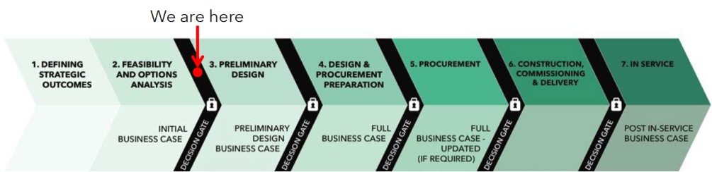 Photo above: Project status (as shown in Metrolinx Initial Business Case Update) - View larger (PDF)
