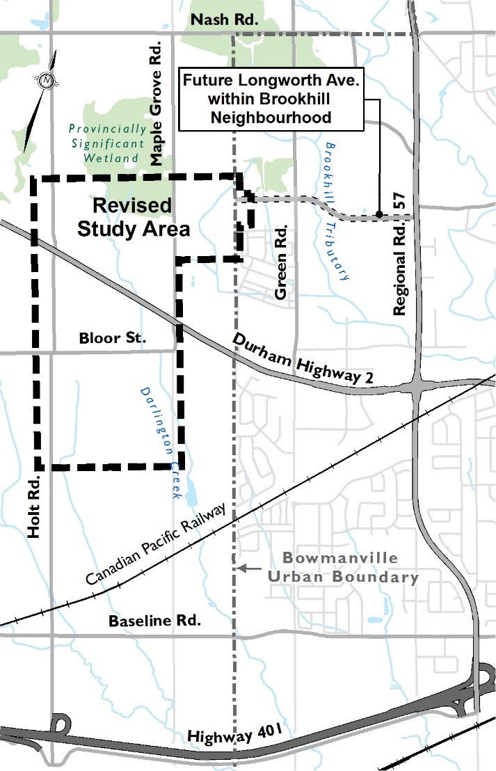 Clarington is investigating alternatives and possible alignments for construction of a new road and associated servicing from the Bowmanville west urban boundary (Boswell Drive road allowance) to either Holt Road or Maple Grove Road.