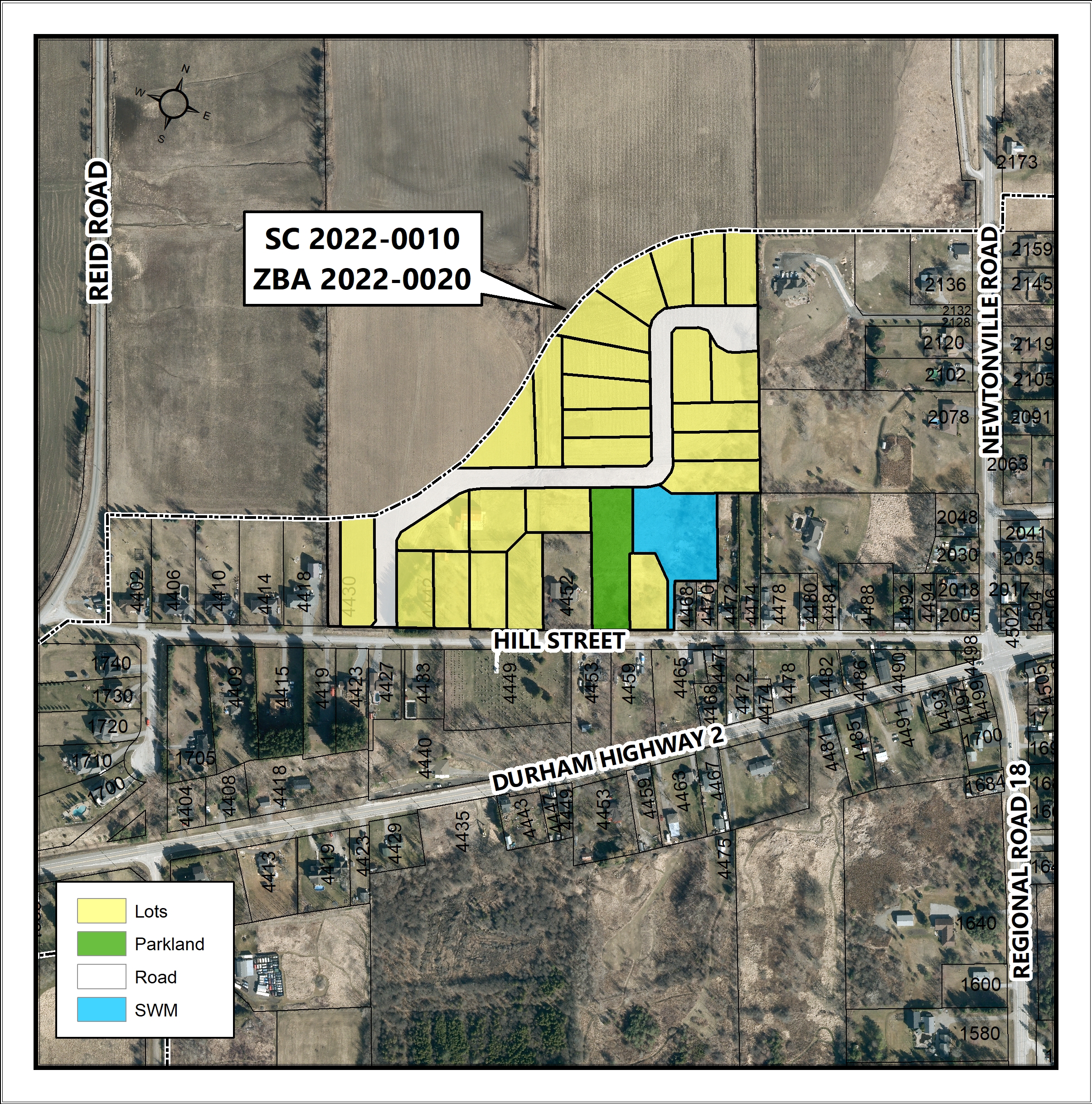 D.G. Biddle and Associates Ltd., on behalf of Whitepine Contractors Ltd. has submitted a subdivision and zoning by-law amendment application to permit the development of 25 single-detached units. The proposal also introduces a new local road which connects off of Hill Street, a stormwater pond, and a future park. The site area is approximately 8.7 hectares (21.5 acres).