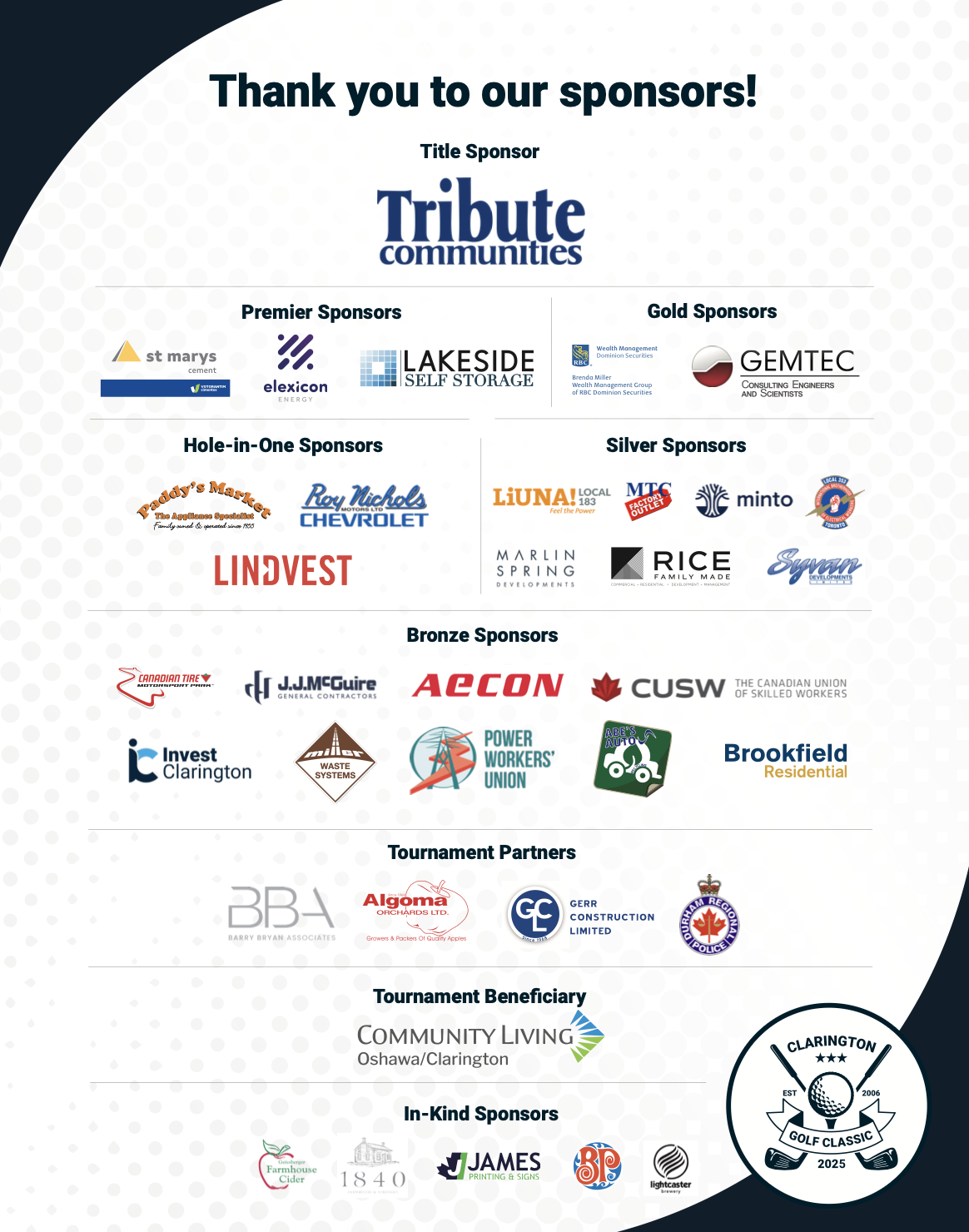 This year, the proceeds of the tournament will support Community Living Oshawa/Clarington in its mission to promote inclusion and enhance the quality of life for individuals with intellectual disabilities. With a steadfast commitment to fostering opportunities, independence, and meaningful connections, the organization has spearheaded numerous programs and initiatives that empower people to thrive within their community. By contributing to Community Living Oshawa/Clarington, your generosity directly impacts individuals and families in Clarington, ensuring that essential supports and advocacy remain accessible and create a more inclusive society.